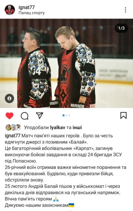 Хокеїсти «Кременчука» та «Сокола» на сторінках своїх соцмереж розповіли про військових, з іменами яких вони вийшли на лід.