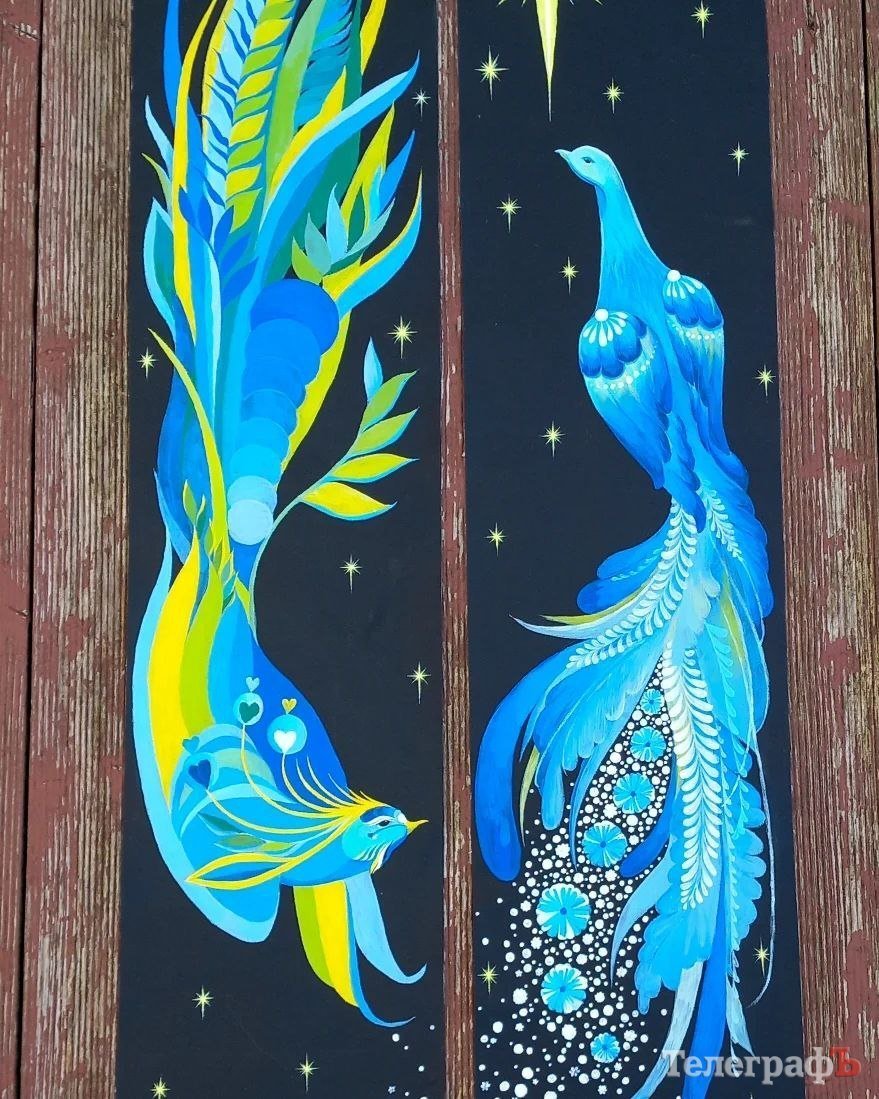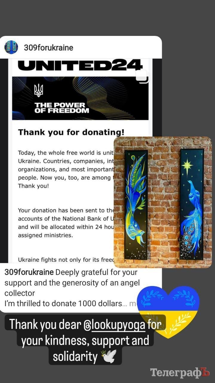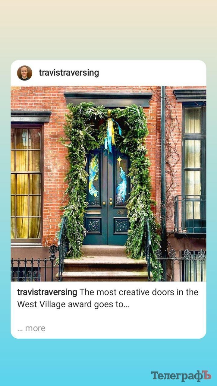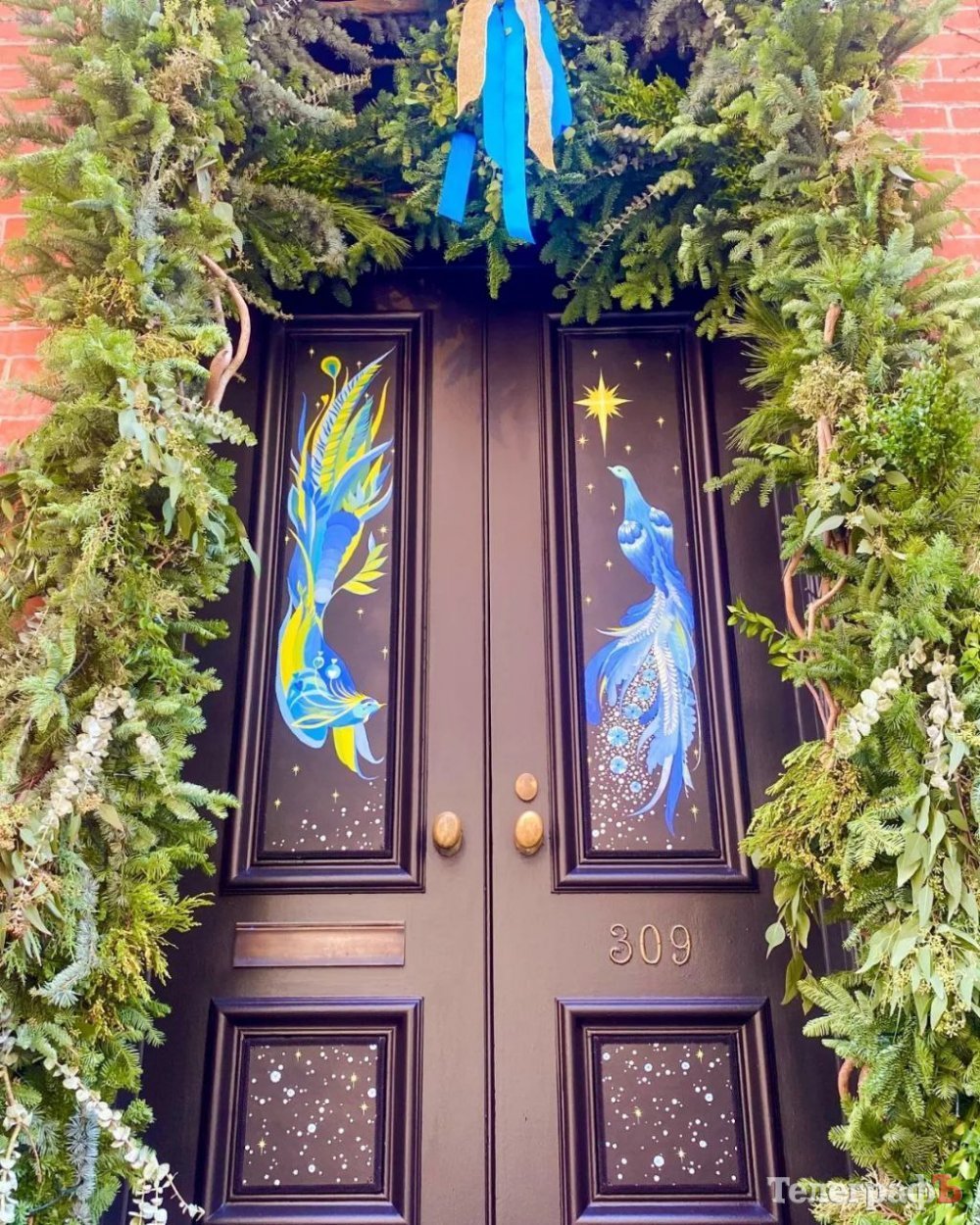 А ось така пташка прикрасила двері одного з будинків Нью-Йорку. Панелі для різдвяної прикраси кременчуцька художниця намалювала на замовлення Susanne Lopez, що відвідувала майстер-клас Яни з українського живопису у Дубліні. До речі, цей птах приніс у фонд United 24 (глобальна ініціатива з підтримки України) тисячу євро: замовниця роботи продала панелі із пташкою, а також зробила пожертвування для підтримки України.