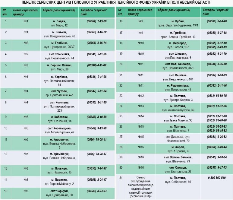 Контакти «гарячої лінії» Головного управління ПФУ в Полтавській області: