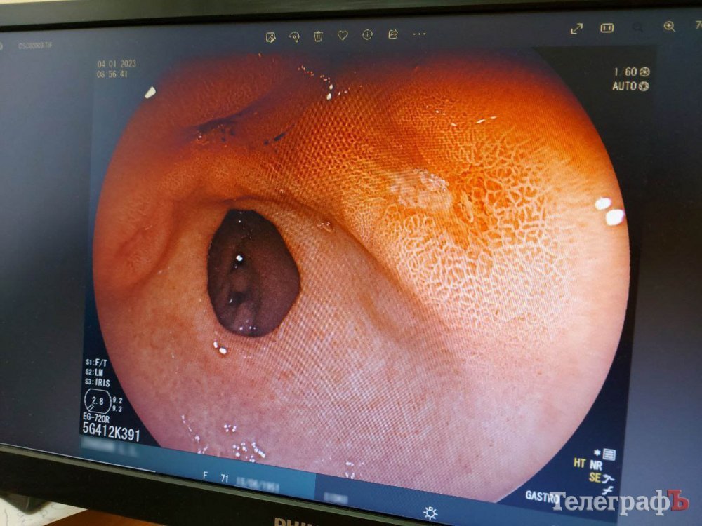 – Тепер маємо гастроскоп експертного рівня, за допомогою нього можна побачити зміни у слизовій оболонці, яких ми раніше не бачили, коли дивилися в окуляр старого гастроскопа. Раніше були апарати, які називалися фіброгастроскопи, вони були низької роздільної здатності, лікарі дивилися в окуляр, де було невелике наближення і могли побачити виразку, ерозію, поліп.