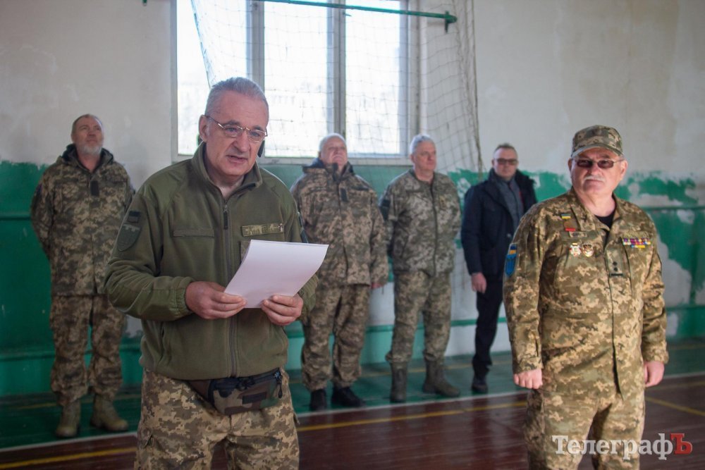 Андрій Чуйко зауважив, що у складі Кременчуцького добровольчого куреня декілька сотень бійців. На шикуванні сьогодні прийшли не всі – є ті, хто зараз виконує завдання з охорони важливих інфраструктурних об’єктів на території району.