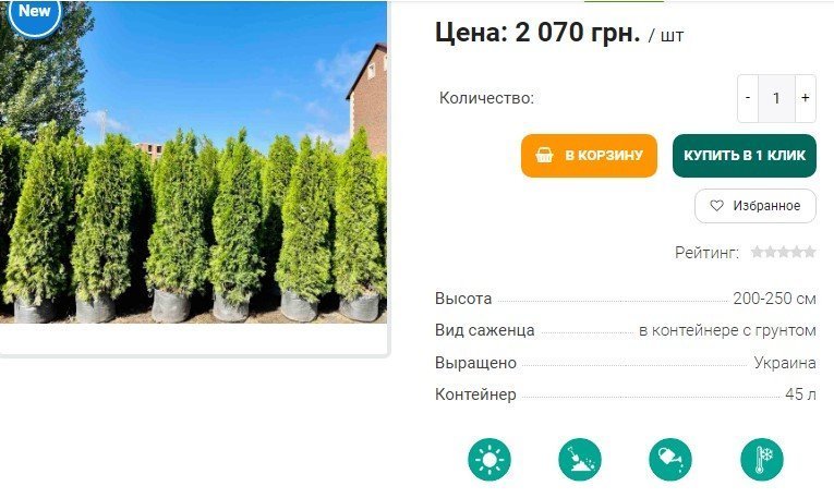 Туя західна «Смарагд» (висотою 2-2,2 м) у прайсі для «Благоустрою Кременчука» — по 2 250 грн. Аналогічний саджанець в інтернет-магазині коштує 2 070 грн.