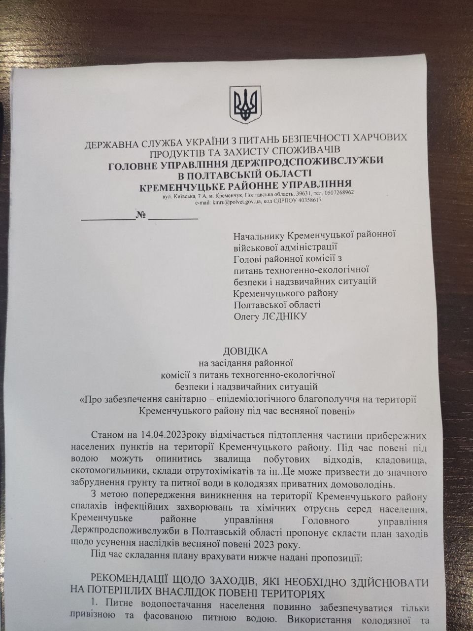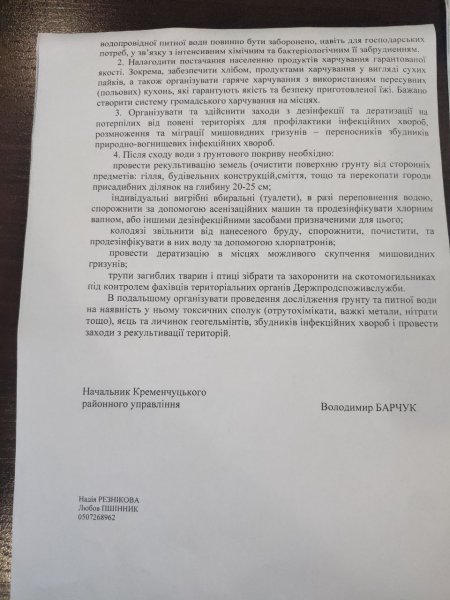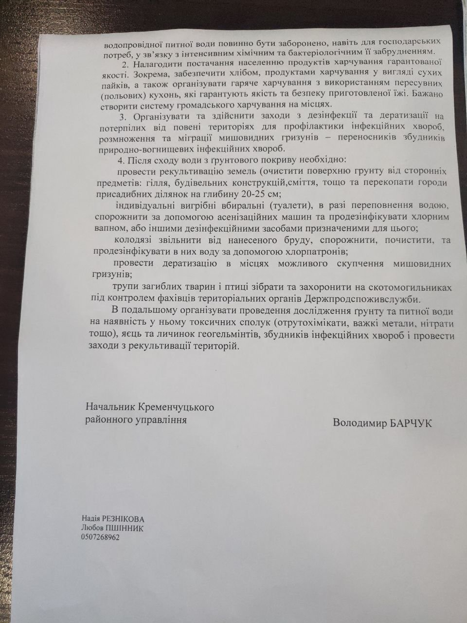 Кременчуцьке районне управління Держпродспоживслужби своєю чергою розробило рекомендації для потерпілих внаслідок повені територій.