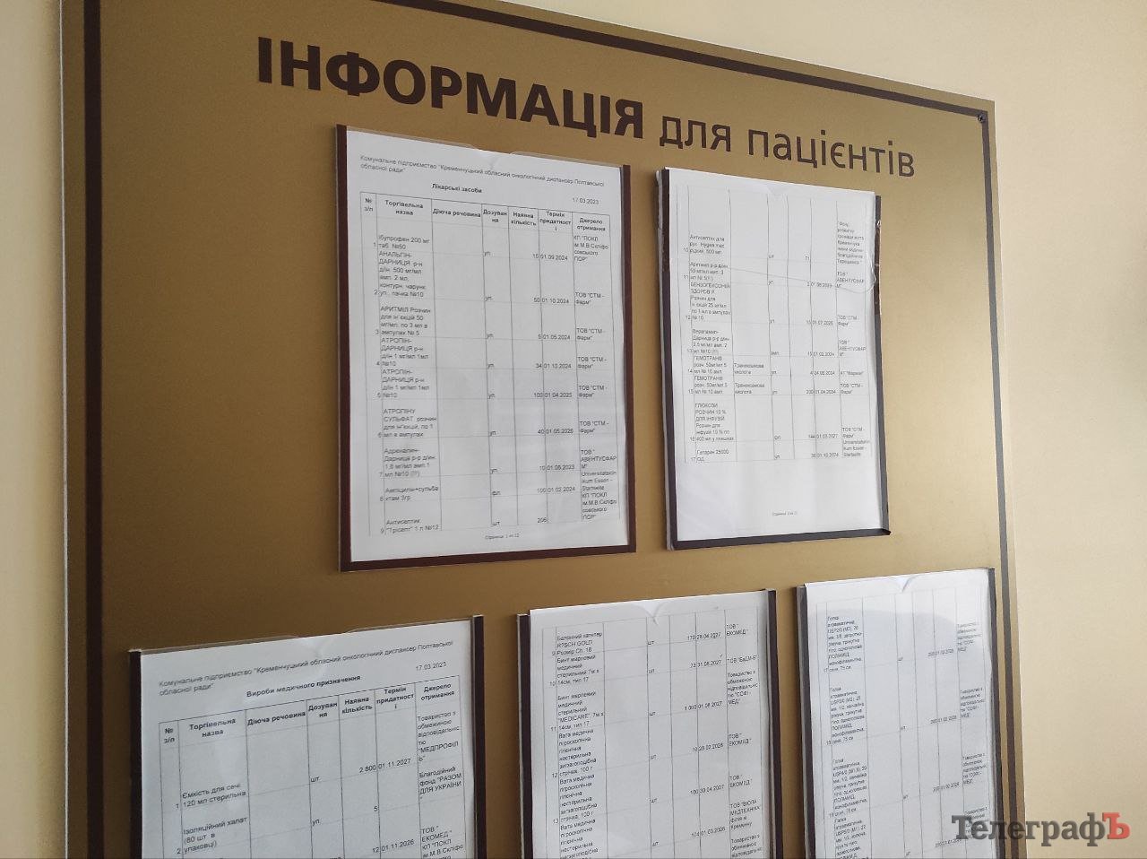 «Кременчуцький Телеграф» завітав і до амбулаторії, і до відділення. На дверях і на стенді дійсно висять списки залишків препаратів і виробів, які доступні пацієнтам у медзакладі. Проте останнє оновлення списків від 17 березня 2023 року.