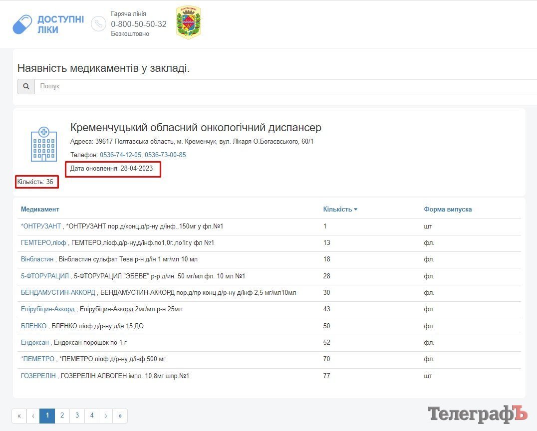 Також відповідну інформацію ми знайшли й на сайті «Доступні ліки», а ось на сайті самого онкодиспансеру нічого такого знайти не змогли.
