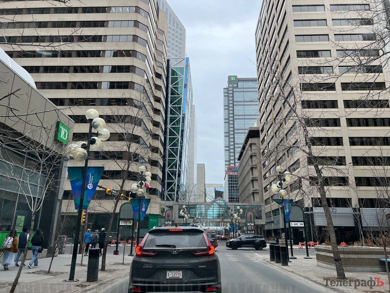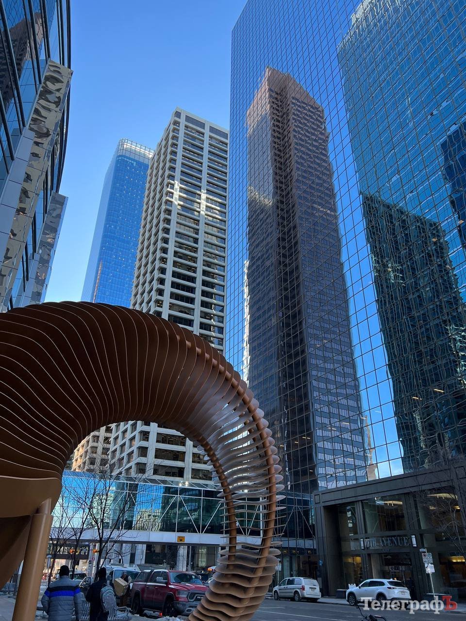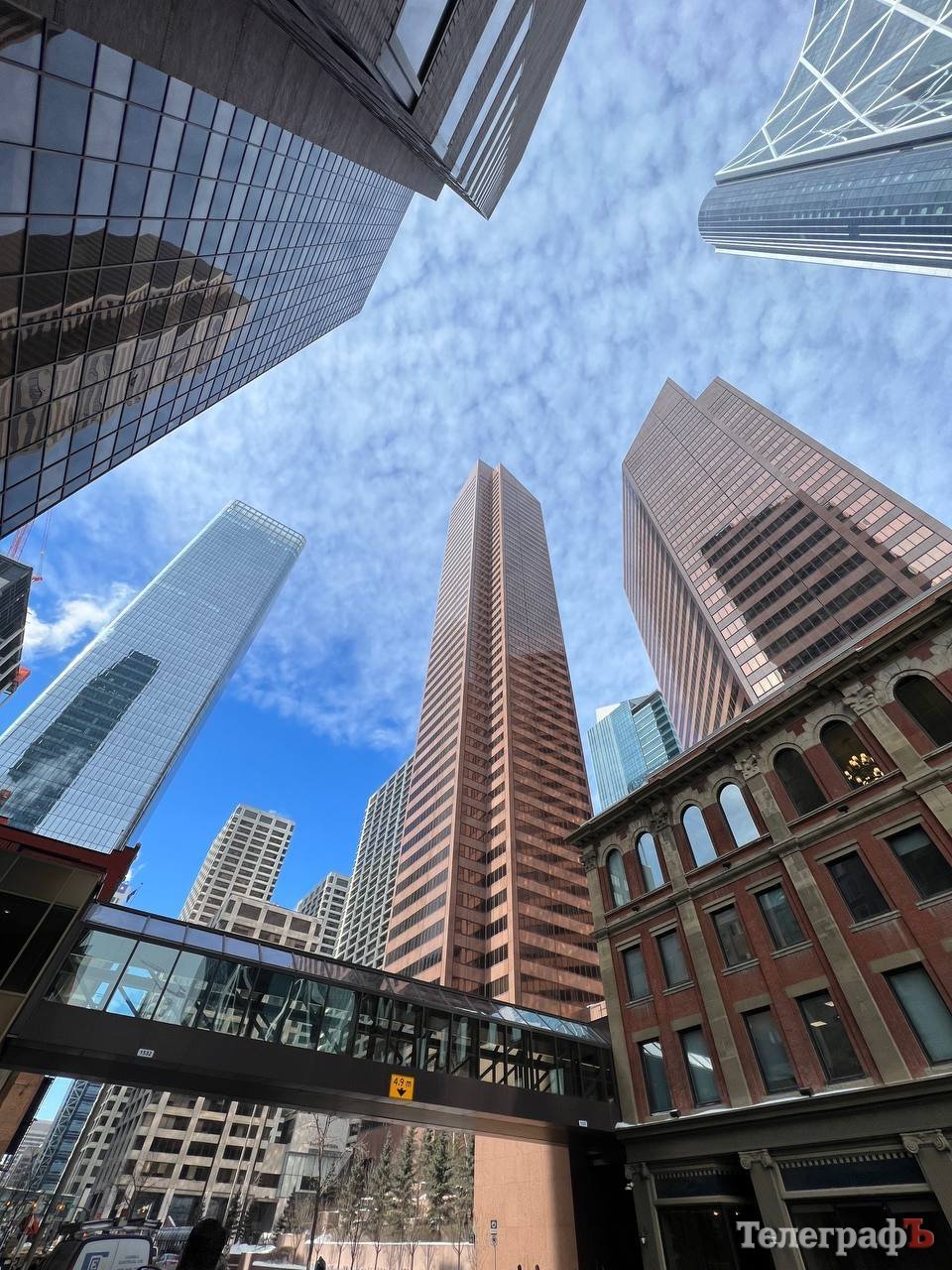 Калгарі відомий тим, що усі його хмарочоси у діловому центрі поєднані один з одним системою надземних переходів — так звана система Skyway. Загальна протяжність цих закритих пішохідних переходів на висоті 15 футів (ред. — приблизно 4,5 метри) — понад 18 км! Тобто взимку можна гуляти по центру міста не виходячи на вулицю. До речі в інших великих містах Канади, наприклад у Торонто, збудовані такі ж великі підземні переходи — цілі підземні міста зі всією інфраструктурою. Клімат в Альберті такий, що зима майже відразу переходить у літо — весни практично немає. Наприкінці квітня ще було холодно та жодного зеленого листочка на деревах, а 30 квітня різко потепліло та все одразу розпустилося.
