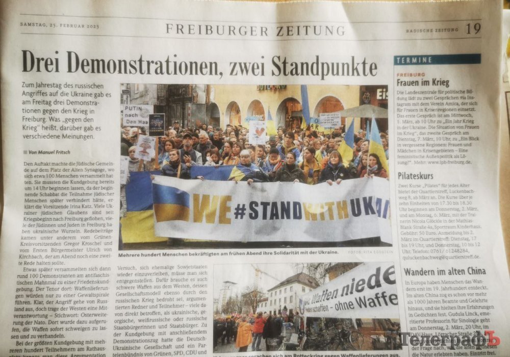 Мітинг перед Ратушей Фрайбурга із закликами надати Україні більше зброї