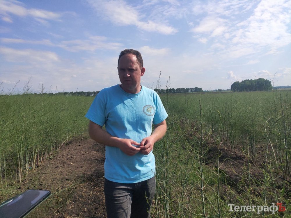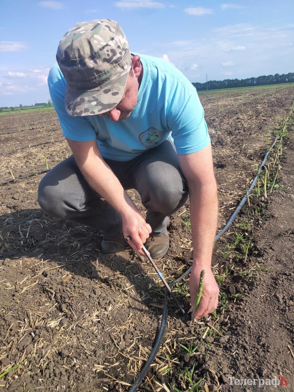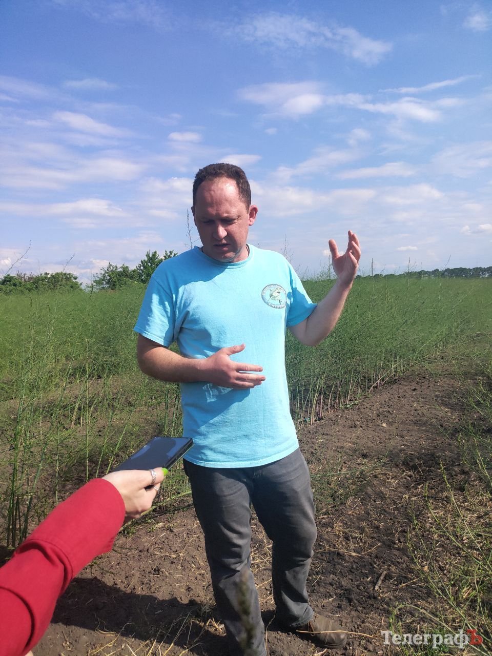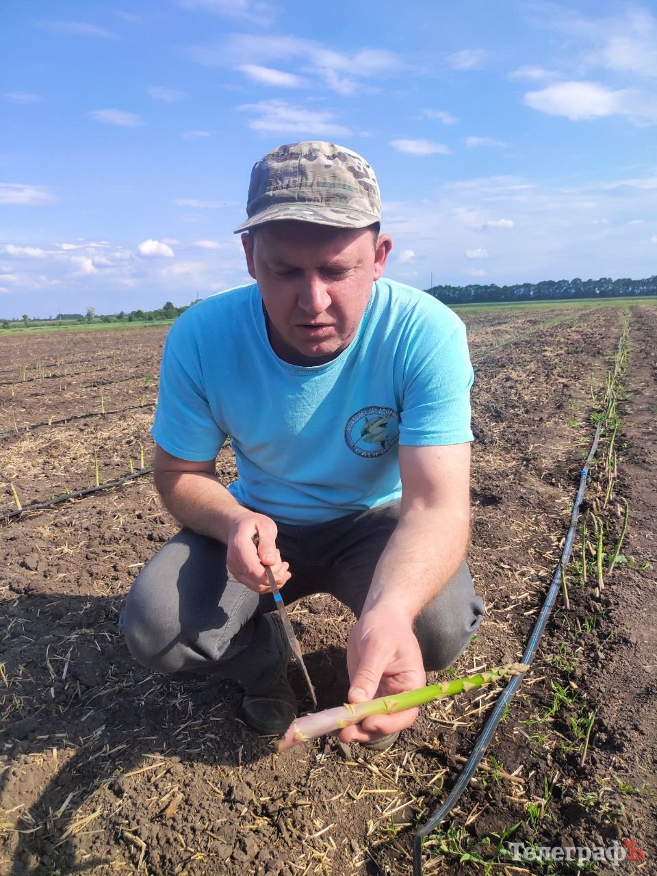 Ми з’їздили за більш ніж 80 кілометрів, до села Кукоби, що поблизу Горошиного та Оболоні на Полтавщині. Тут на трьох гектарах землі місцевий фермер Олександр Журавель вирощує корисний та модний нині овоч — спаржу. Спаржа — це багаторічна рослина (не плутайте зі звичною нам спаржевою квасолею), яку ще називають аспарагус лікарський або заячий (лікарський) холодок. Так, це саме той холодок, який можна зустріти у лісах та поблизу річок, і який часто використовують для оформлення букетів.