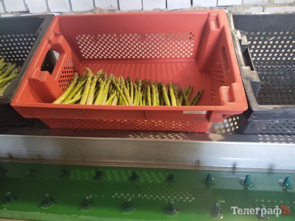Це установка для обрізання коренів та миття спаржі. Таких в Україні – лише три. Приїхала до сільської ферми прямою поставкою з Голландії. Раніше це робили вручну