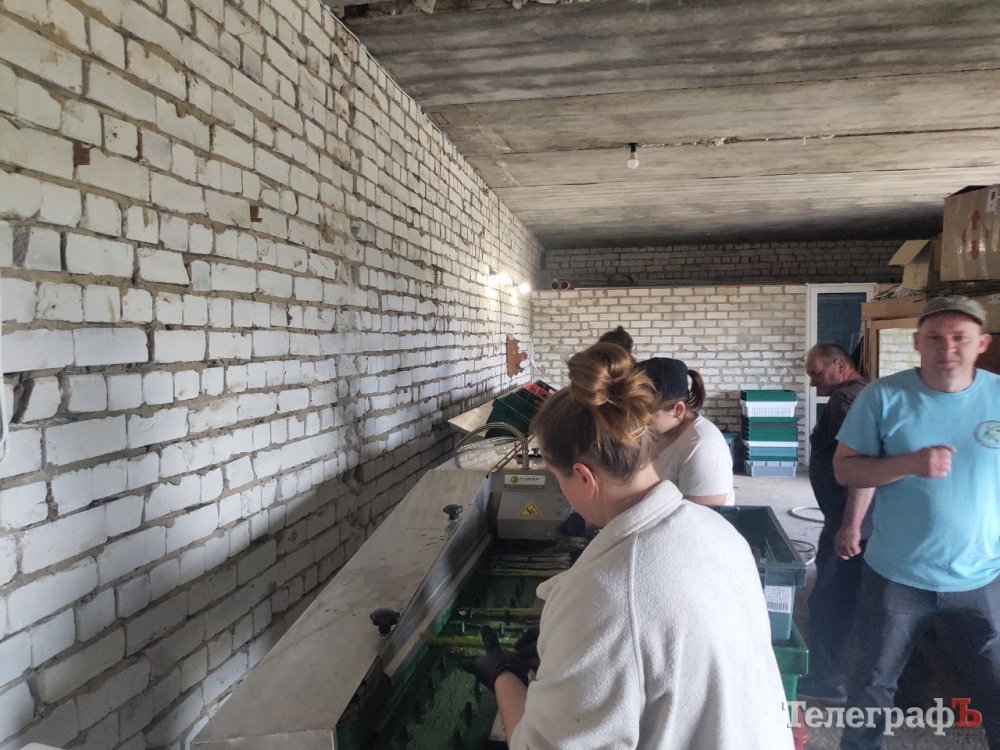 Поки ми ходимо полями – у цеху кипить робота: працівники складають зібрані овочі в установку, складають у ящики. Тут же — фасують в упаковку. За спакованими паростками приїздить машина — і везе до найближчої Нової пошти.