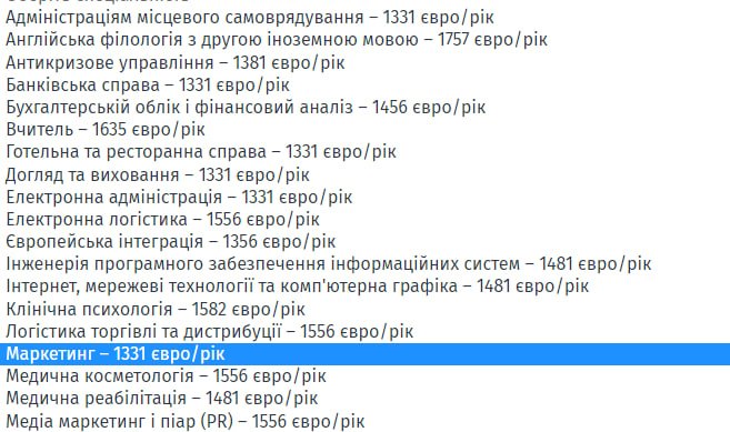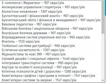 Найдорожче в Україні навчатися у сфері медицини, IT, лінгвістики, менеджменту, маркетингу, міжнародних відносин, акторського майстерство та режисури, права.