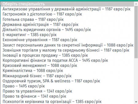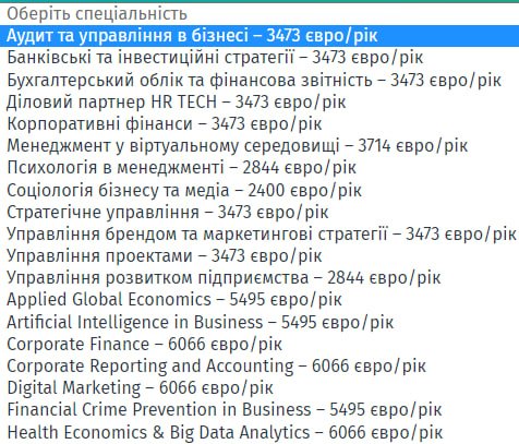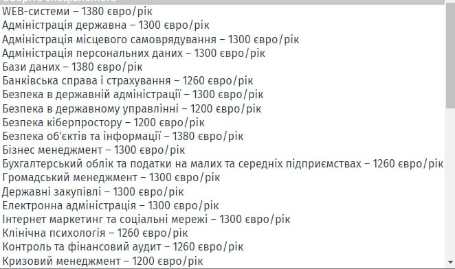 110 тис грн (комп'ютерні науки, психологія, соціологія, соцробота, право. можна отримати стипендію розміром 25-100% вартості навчання)