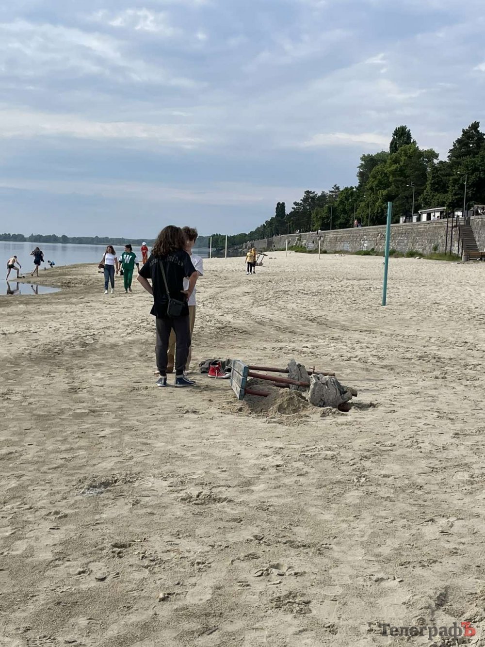 Директор «Кременчук Аква-Сервіс» Василь Білоус сказав нам те ж саме, що і поліція — що грибок на пляжі не стояв, а лежав у той день. Коли вода на пляжі піднялася на 2 метри, там підтопило грибки, унесло дерев’яний рятувальний пост. Коли вода спала, рятувальники почали витягувати всі споруди на пляжі.