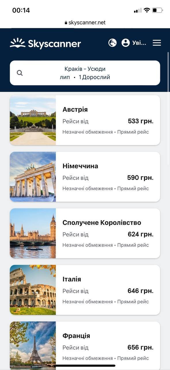 Більш приємні ціни зі Львова, Івано-Франківська, Чернівців, Одеси: