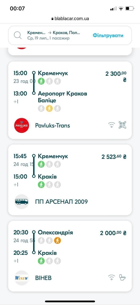 - Кременчук-Краків — від 2300 грн (є рейс до аеропорту Краків Баліця).