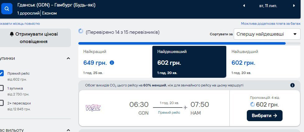 Ціни постійно змінюються, вони можуть швидко підвищитися, тому якщо знайшли потрібний варіант, одразу його бронюйте. Вже за 10 хвилин ви можете побачити, як вартість значно зросла.