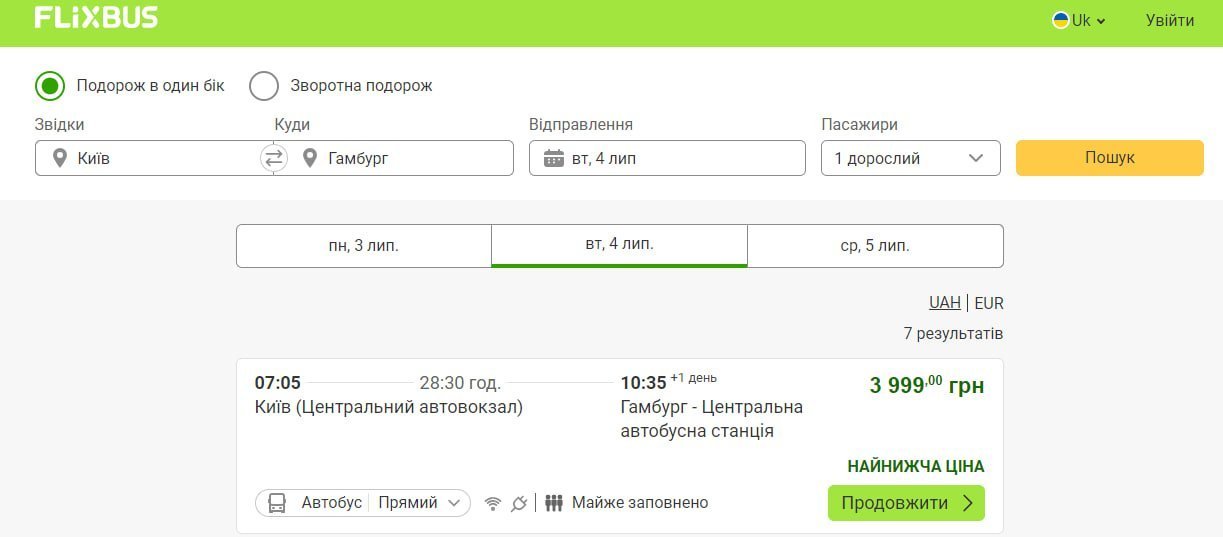 Наприклад, прямий автобус Київ-Гамбург коштує 4000 грн.