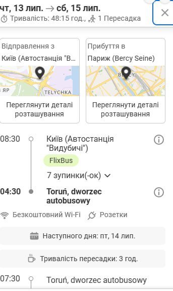 - Якщо комбінуєте потяг та автобус упевніться, що у вас достатньо часу на пересадку. Подивіться, як дістатися до автостанції з вокзалу, скільки часу на це піде.