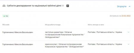 Кінцевий бенефіціарний власник ТОВ «Укрбудпроектсіті» — Горпинченко Микола Васильович — зареєстрований у полтавському гуртожитку на вулиці Старий Поділ. Особа з таким же іменем та прізвищем є учасником ГО «Правовий захист співробітників органів внутрішніх справ, запобігання та протидія корупції». Як пише видання «Наші гроші. Регіон», у судовому реєстрі можна віднайти справу проти повного тезки Миколи Горпинченка, якого у ній називають колишнім співробітником управління по боротьбі з організованою злочинністю. Він, за версією слідства, у складі організованої злочинної групи викрадав газовий конденсат з магістральних трубопроводів. До речі, на даний час фірма «Укрбудпроектсіті» Миколи Горпинченка має замовлення і від обласної прокуратури — на облаштування укриття.