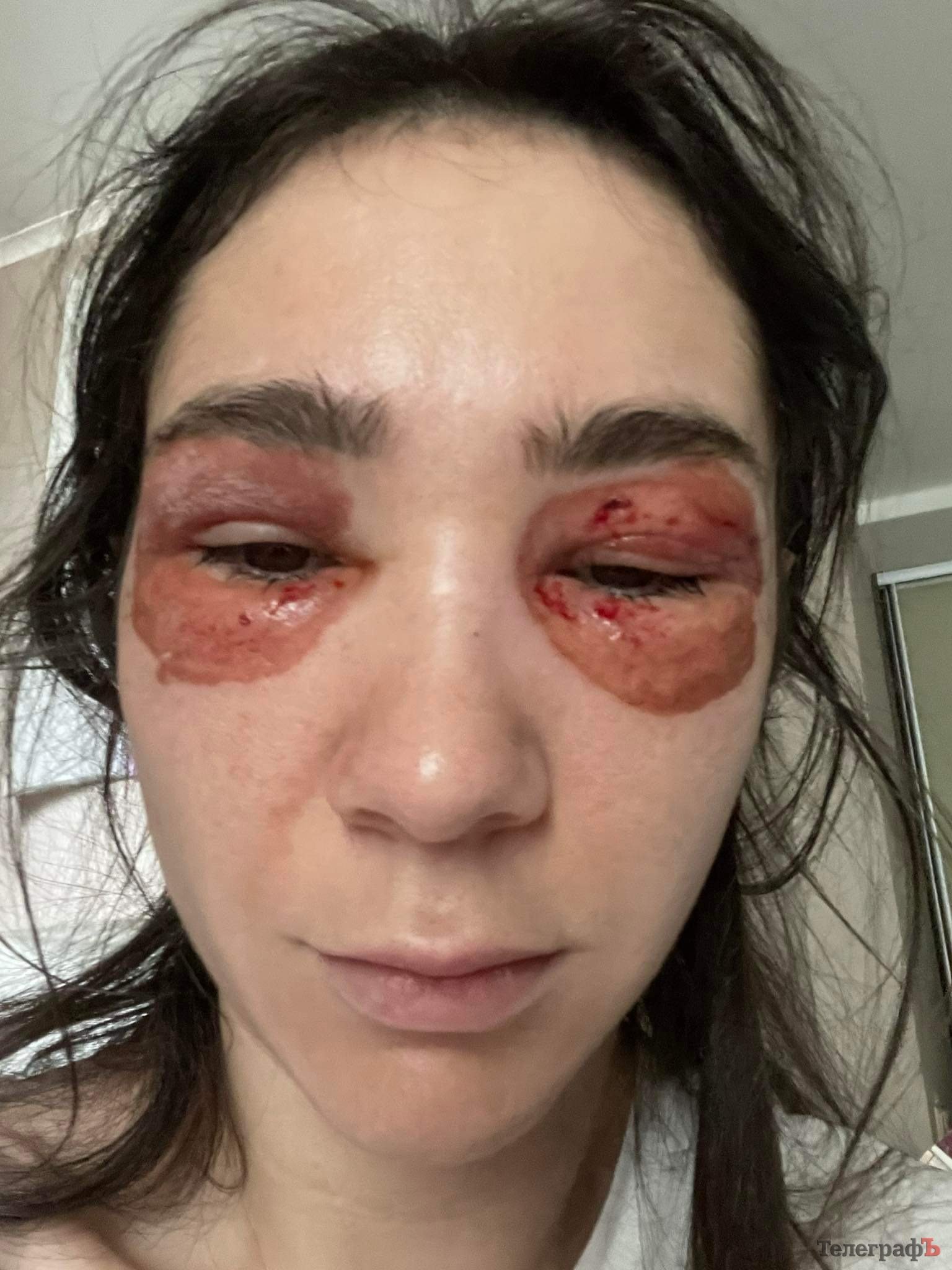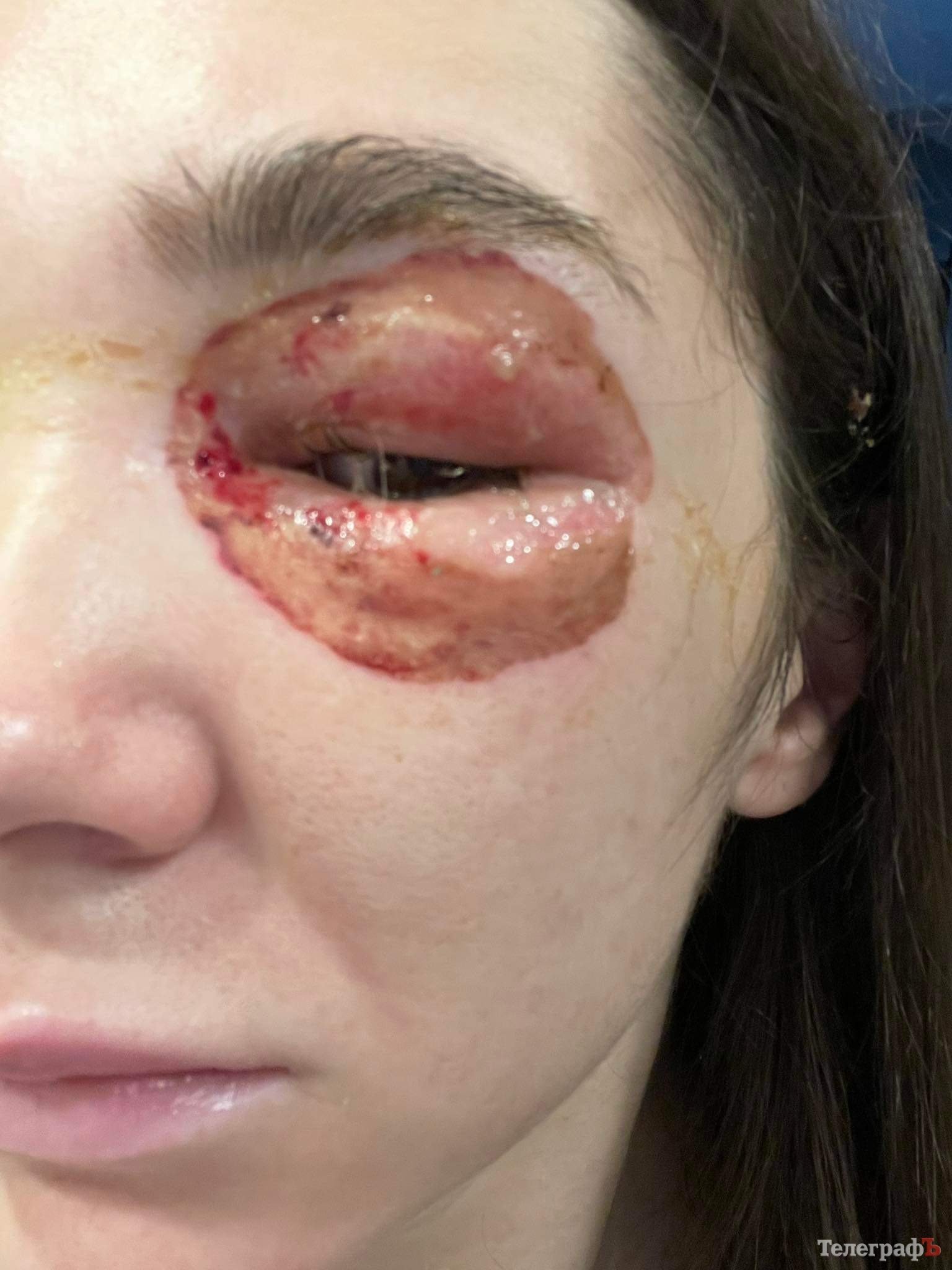 До редакції «Телеграфа» звернулась кременчужанка Євгенія. Вона поскаржилась на наслідки процедури, зробленою у косметологічному салоні Кременчука. За словами дівчини, шкіра навколо очей набрякла та дуже пекла, з очей виділялася рідна, через це виникли проблеми з зором. Ставало все гірше, тож за три дні дівчина звернулась до лікарів, які діагностували опік 1-2 ступеню та призначили лікування: