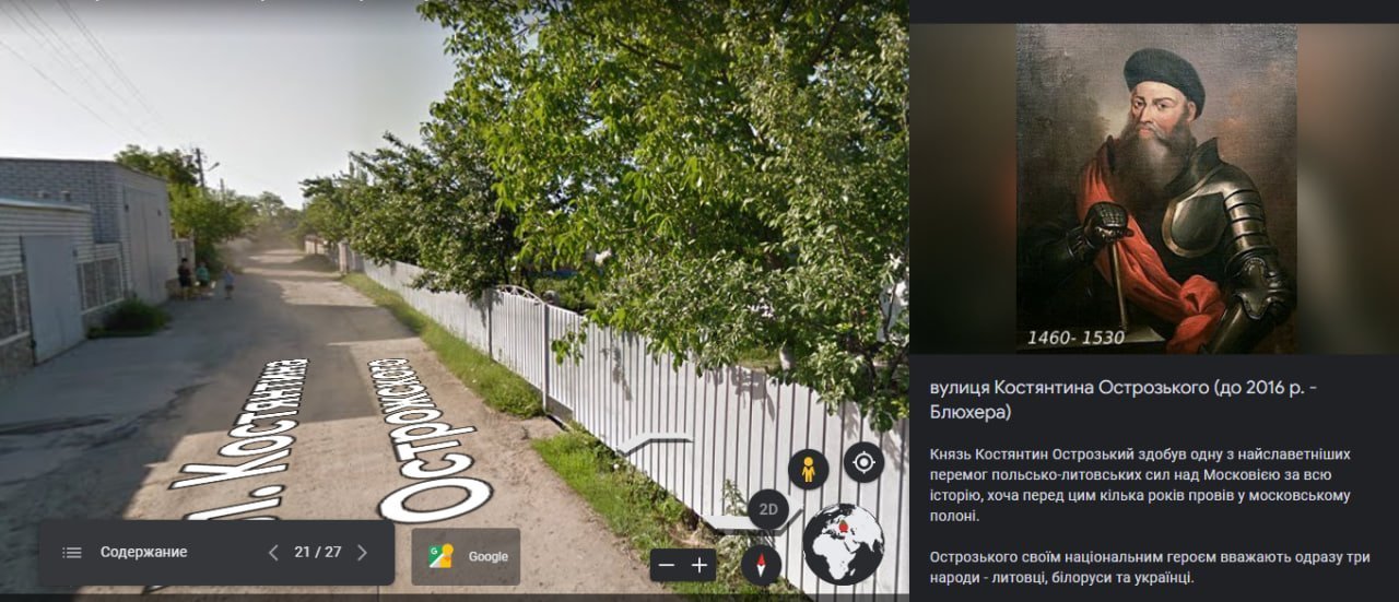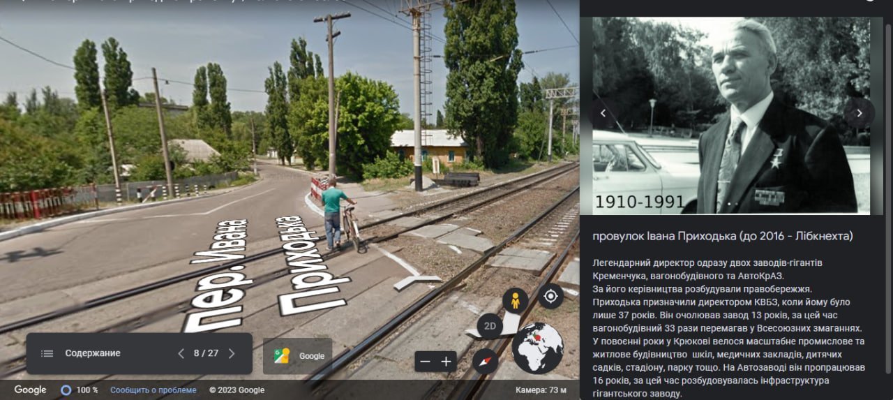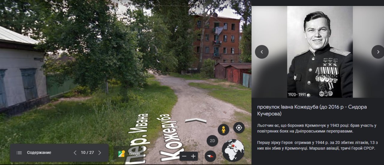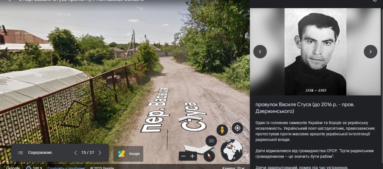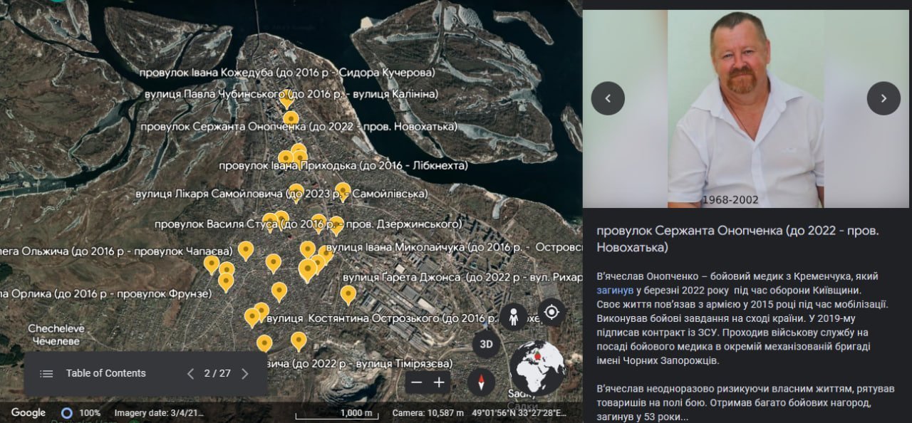 Ми створили мапу перейменованих вулиць в Google Earth, на якій можна «політати», роздивитись вулиці, подивитись фото тих, на чию честь назвали вулиці. «Потицяти» мапу Крюкова можна тут