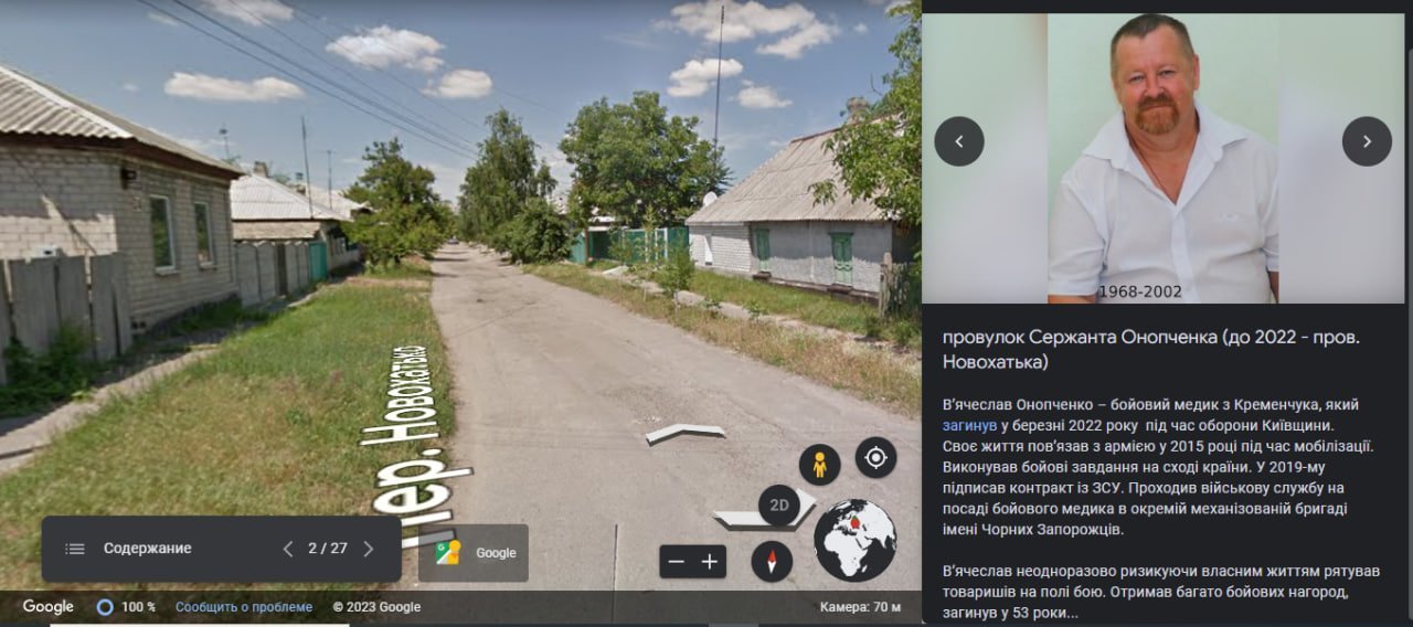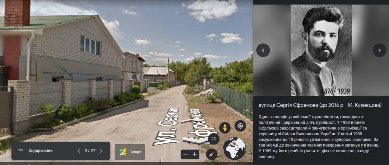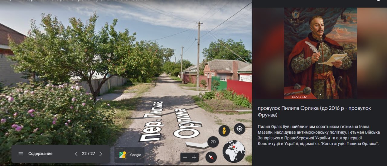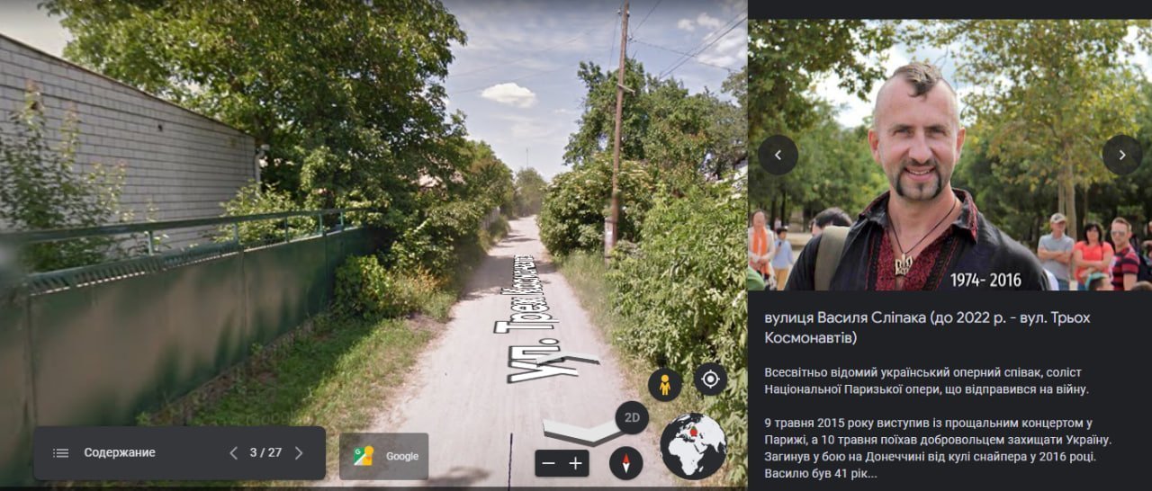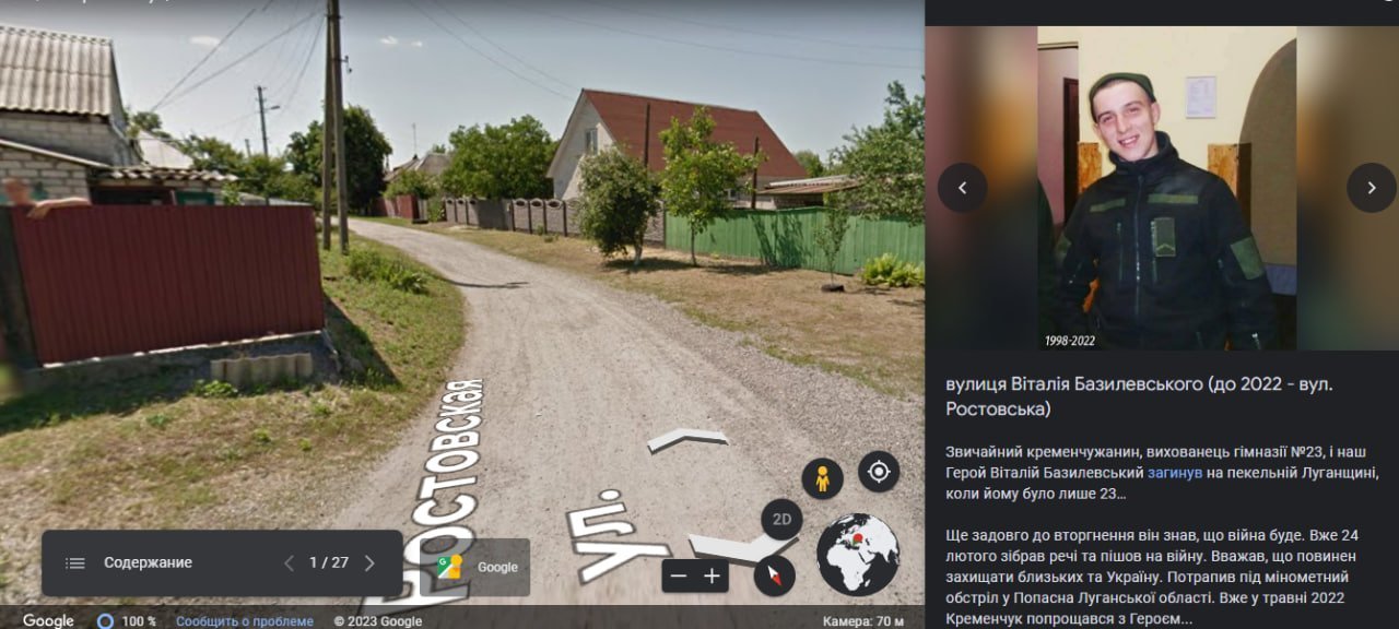 Ми створили мапу перейменованих вулиць в Google Earth, на якій можна «політати», роздивитись вулиці, подивитись фото тих, на чию честь назвали вулиці. «Потицяти» мапу Крюкова можна тут