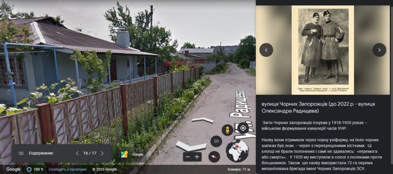 Ми створили мапу перейменованих вулиць в Google Earth, на якій можна «політати», роздивитись вулиці, подивитись фото тих, на чию честь назвали вулиці. «Потицяти» мапу Раківки можна тут
