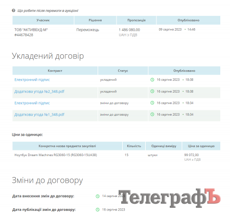 Ми перевірили вказану інформацію - і зазначимо, що на ранок 17 серпня в системі Prozorro таки з’явилося повідомлення про розірвання договору із постачальником і навіть додаткові угоди. Водночас сам договір про цю закупівлю, як і решта інших - так і не оприлюднений.