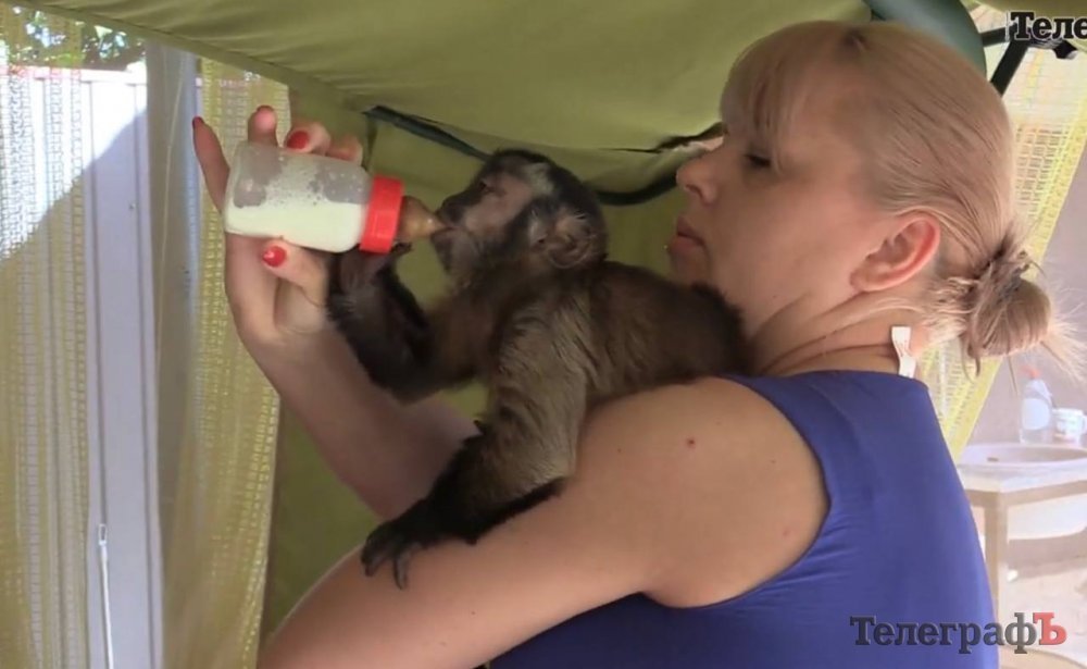 Мавпочка Алекс, який теж родом з Харківського розплідника, схожий на 3-річну дитину. Він майже не злазить з рук, їсть дитяче харчування та поки що потребує підгузків.