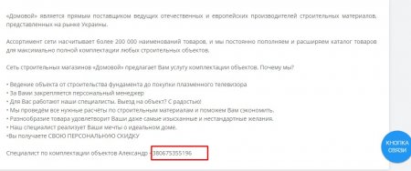 Але й це ще не все. Мобільний телефон успішного ТОВ «Активбуд-М» засвітився на сайті центру будівельних матеріалів «Домовой».
