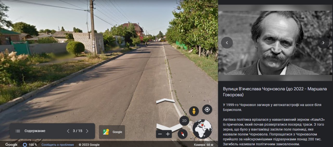 Ми створили мапу перейменованих вулиць в Google Earth, на якій можна «політати», роздивитись вулиці, подивитись фото тих, на чию честь назвали вулиці. «Потицяти» мапу 1-3 Занасипів можна тут.