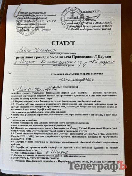 У розпорядженні редакції ТЪ є статут Свято-Успенського собору, у якому вказано, що на сьогодні церква офіційно керується постановами російської православної церкви (чит. п. 1.5.)