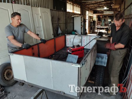 Валерій Мазур розповів, що в команді саме він відповідає за технічне виготовлення причепів та буржуйок. Він показав новий причіп, виготовлений руками кременчуцьких майстрів, та пояснив, що наразі їм передають дуже мало старих причепів у такому стані, щоб їх можна було відремонтувати. По собівартості ремонт старого причепа обходиться в середньому у 5-6 тисяч гривень, а виготовлення нового - близько 20 тисяч гривень.