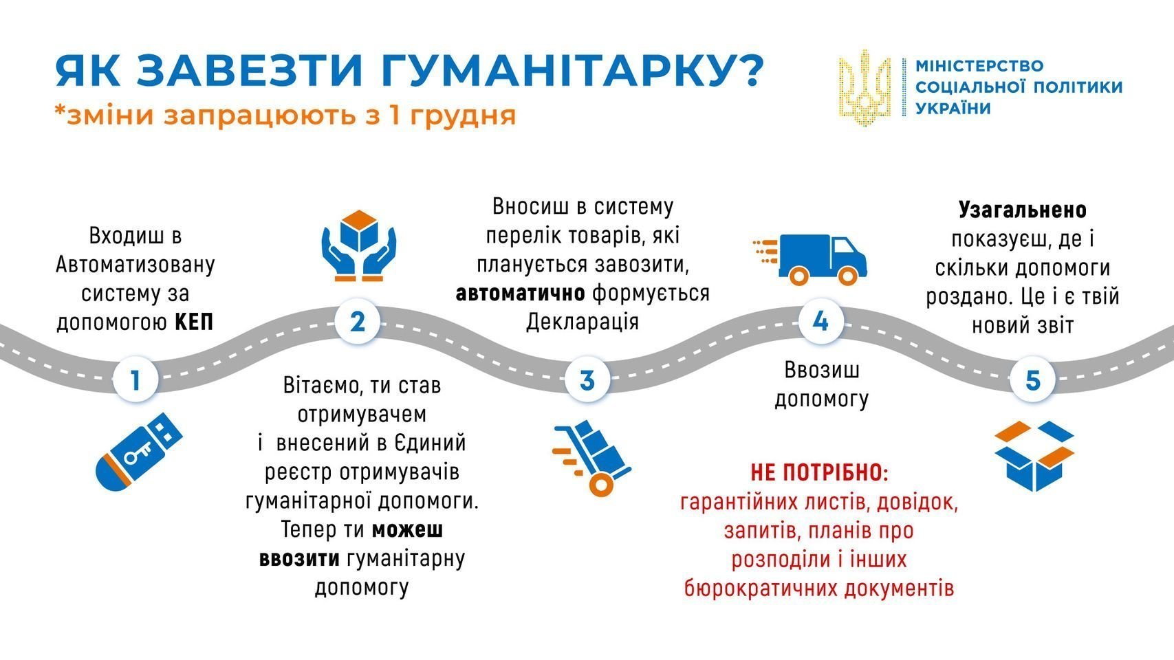 В Мінсоцполітики додали, що наразі єдина автоматизована система обліку гуманітарної допомоги знаходиться у стані розробки, а зміни повинні запрацювати з 1 грудня.