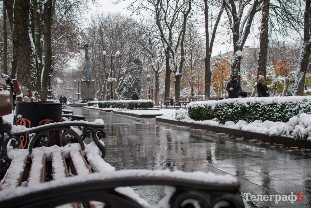 У ніч на 20 листопада у Кременчуці випав перший сніг. Наш фотограф Артем зранку пройшовся центром міста і наробив світлин.