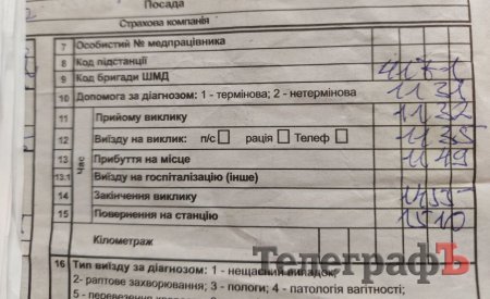За коментарем «ТелеграфЪ» звернувся до директора Кременчуцької станції екстреної медичної допомоги Ігоря Дубницького. Він спростував той факт, що карета «швидкої» їхала до пацієнтки 40 хвилин і показав авторці цього матеріалу картку виїзду, яку бригада швидкої допомоги оформлювала після виклику.