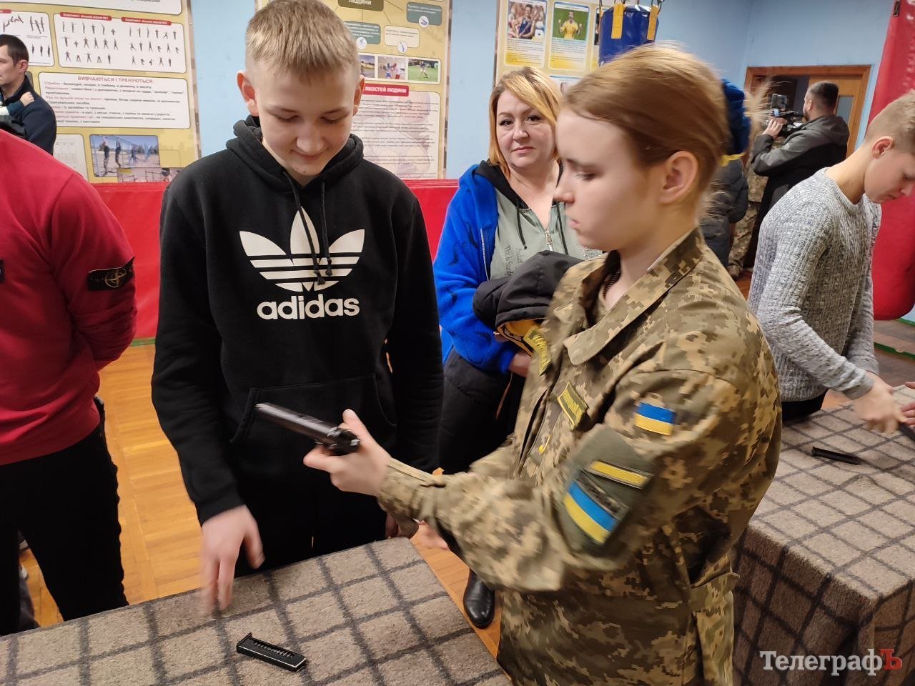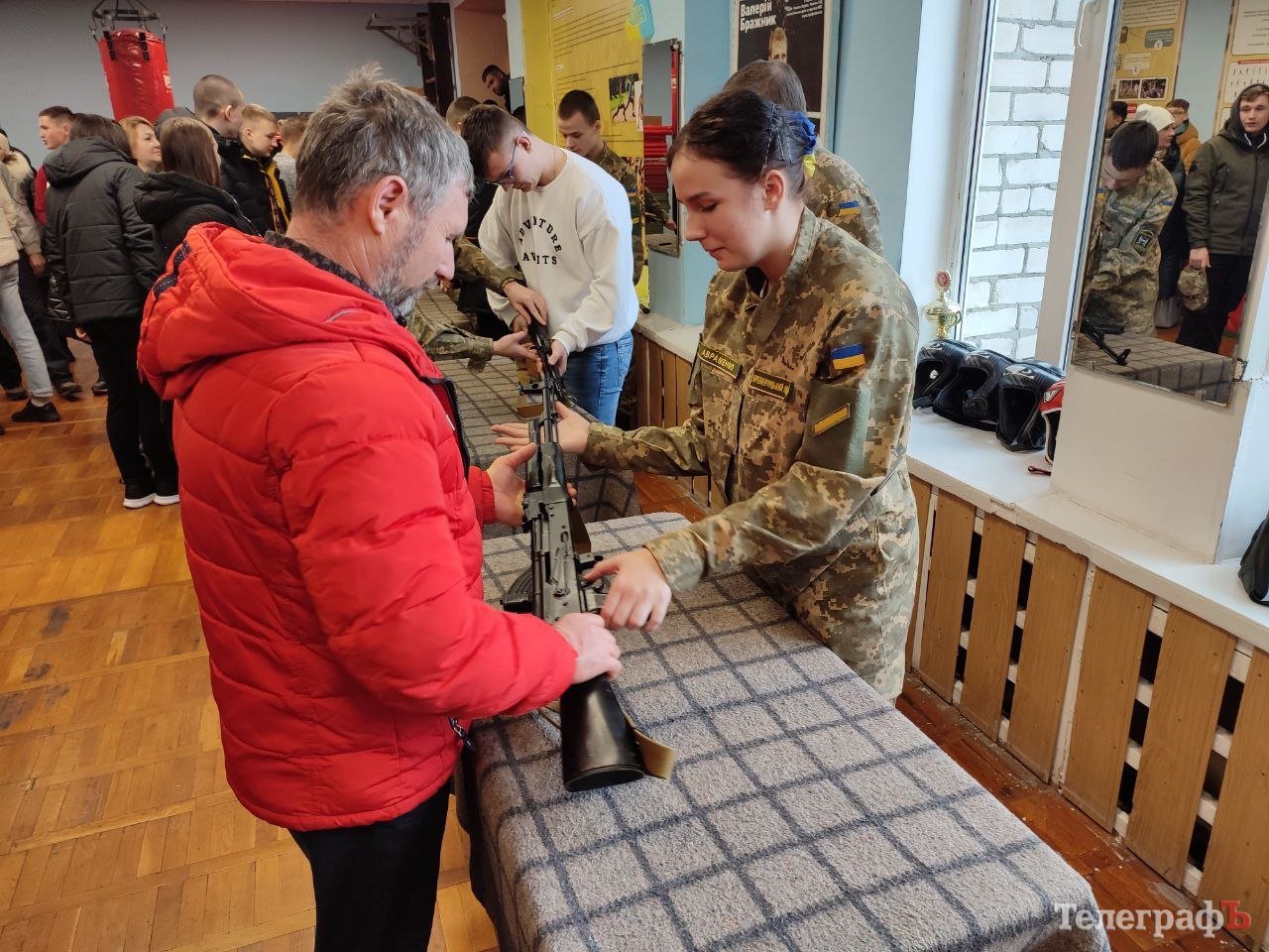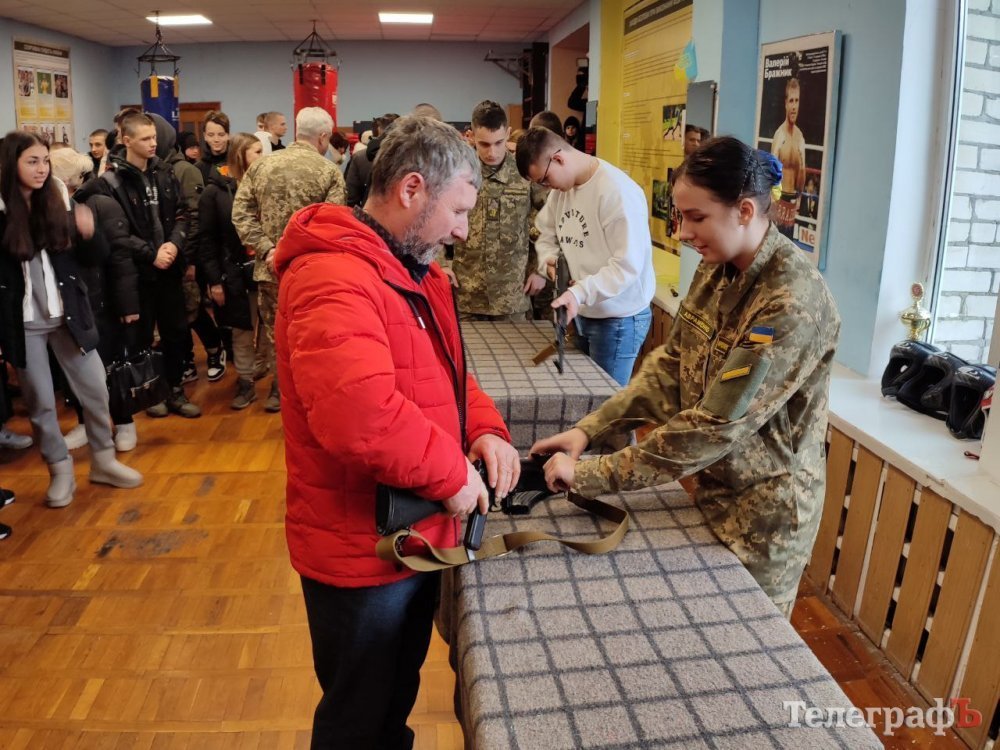 Дівчата демонстрували свої вміння хлопцям-одноліткам, які мають бажання вступити до ліцею, та давали їм можливість спробувати розібрати та зібрати автомат АК-74 та пістолет ПМ. Один із батьків не витримав й теж взяв урок у юнки.