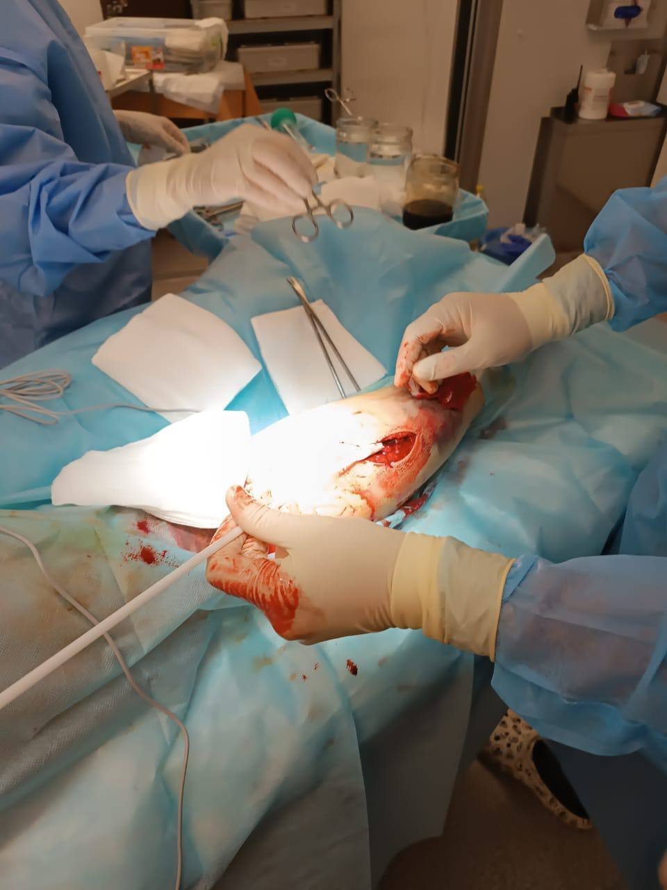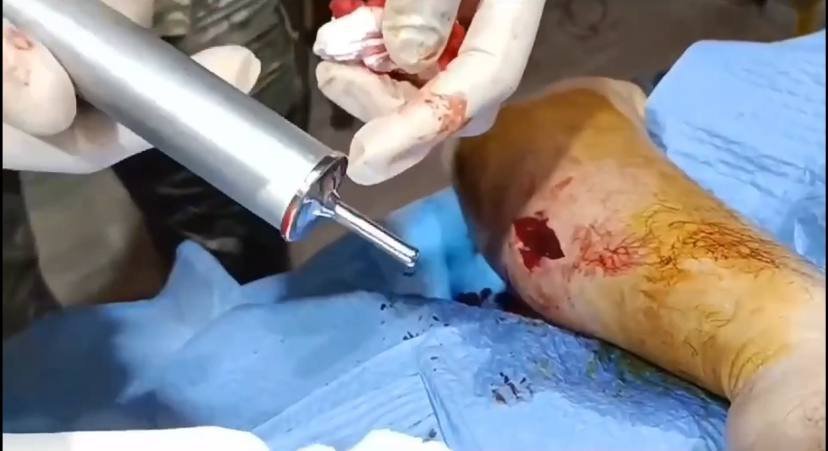 На цьоому відеоролику можна побачити, як за допомогою «Білого Янгола було прооперовано бійця у військовому шпиталі в Дніпрі — уламкове поранення кінцівки. Витягли велетенський уламок.