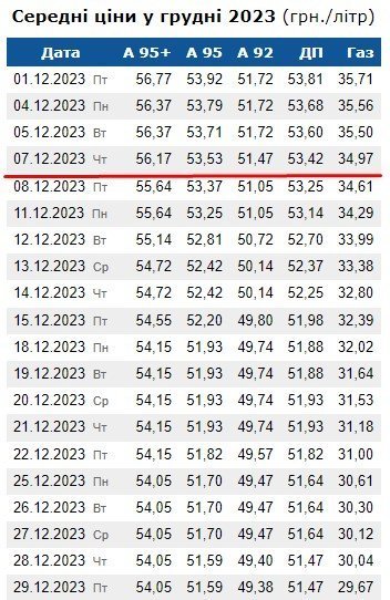 За інформацією «Консалтингова група А-95» на порталі «Мінфін», на момент оголошення замовником тендеру (7.12.23 р.), середня ціна на бензин А 95 на Полтавщині складала 53,53 грн за л, а дизпалива — 53,42 грн за л.