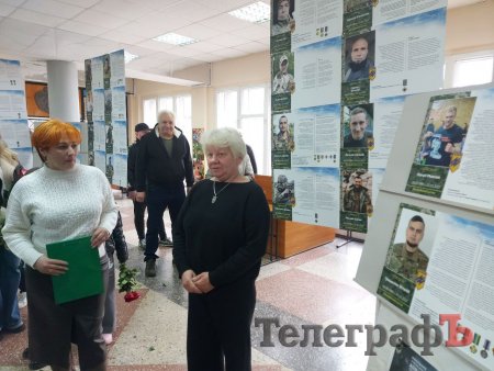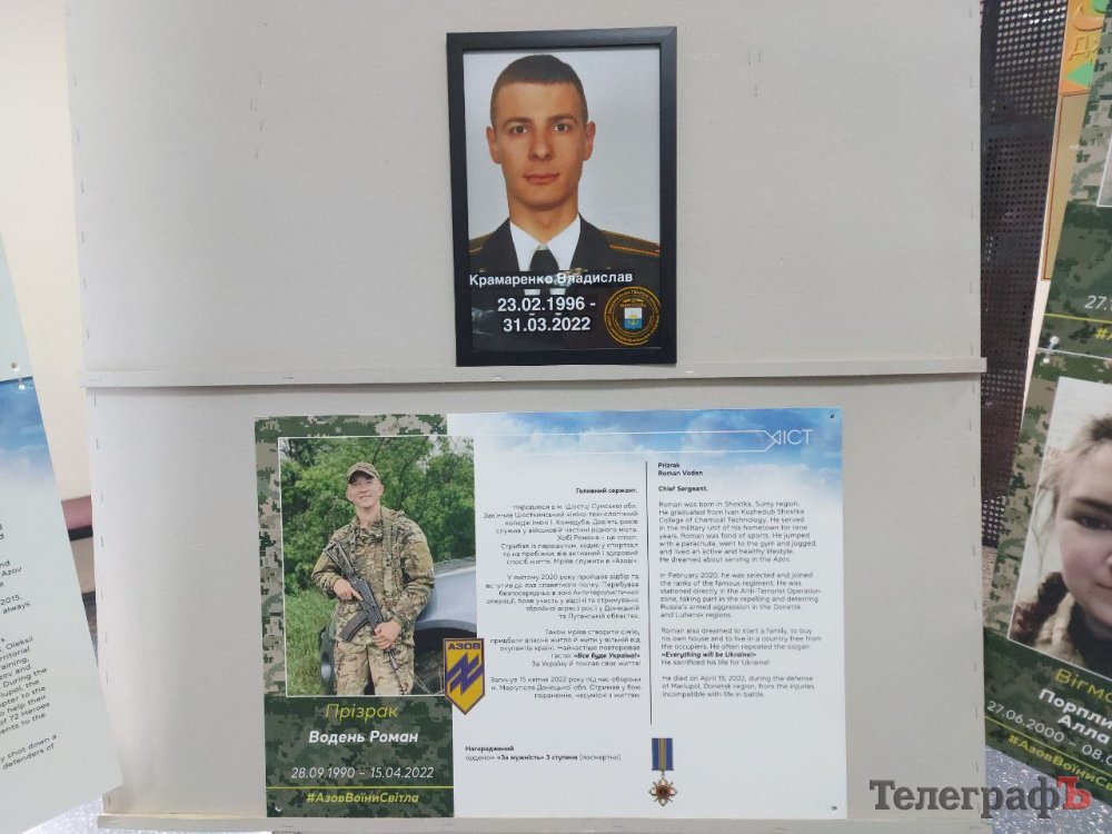 На стендах можна побачити обличчя наших земляків — кременчужанина, Героя України Максима Кагала з позивним «Пістон», полтавки Наталії Стребкової з позивним «Зоряна», світловодчанки Юлії Зубченко з позивним «Сирена» та інших.