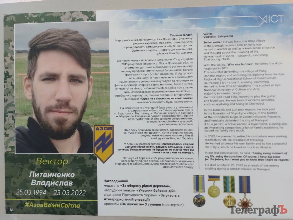 А от сину організаторки виставки Віри Литвиненко Владиславу з позивним «Вектор» сьогодні, 25 березня, мало виповнитися 30 років. Але йому назавжди залишиться 27… Хлопець 2 дні не дожив до свого 28-річчя.