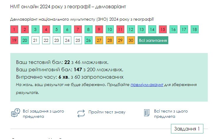 Загалом, з географії ChatGPT набрав лише половину неправильних відповідей. Жовтим підсвічені відповіді, де потрібно було обрати кілька варіантів і ChatGPT частково помилявся. Білі клітинки — запитання, які ми пропустили, бо вони були у картинках і ми не змогли їх надати ChatGPT.