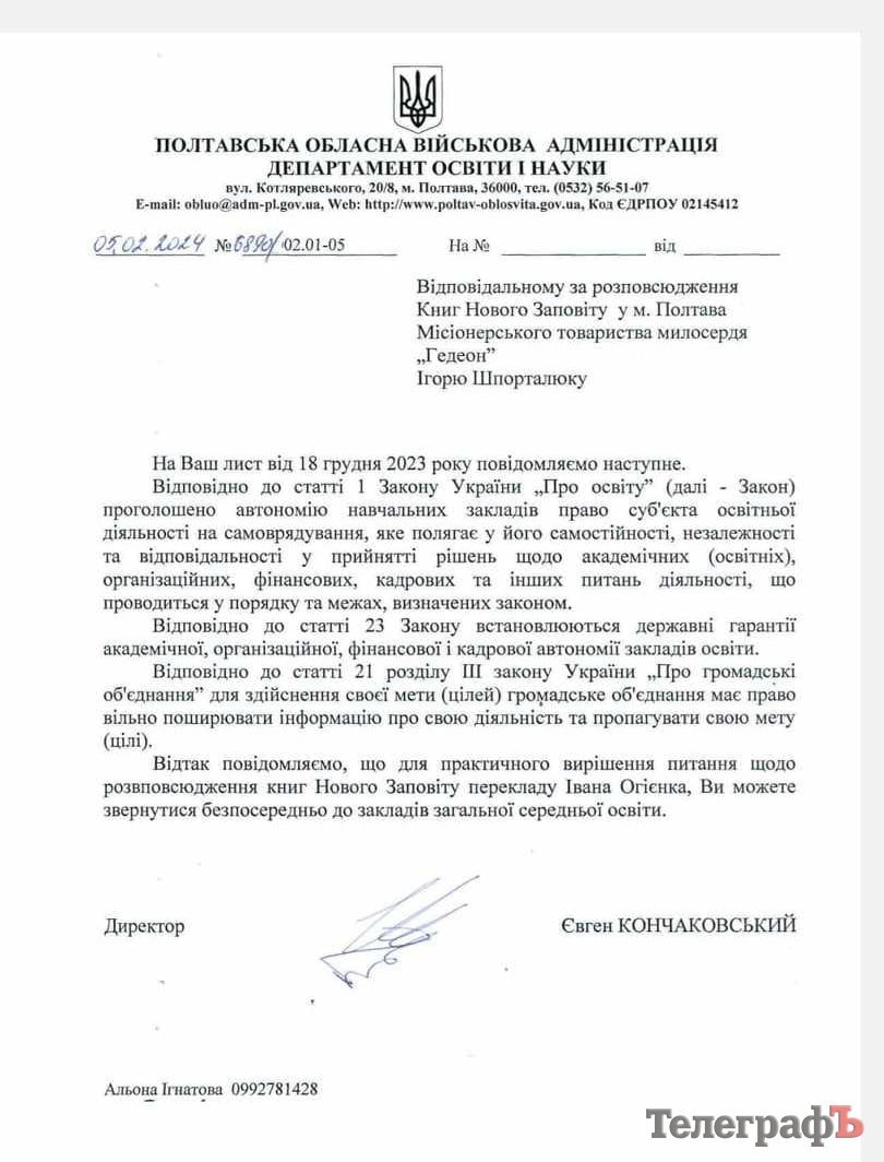 У коментарі Т Ольга розповіла, що вчителі не ставили Вікторові додаткових запитань, адже той мав лист від департаменту освіти Полтавської обласної військової адміністрації. Вона додає, що лист аж ніяк не є дозволом.