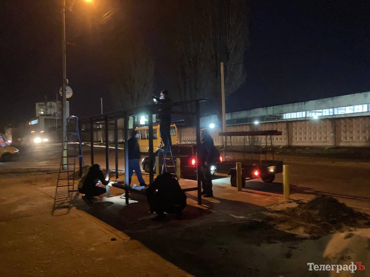 Зупинку громадського транспорту на вулиці Миру почали встановлювати ще наприкінці березня. Станом на 28 березня ремонт вже був на завершальному етапі, а вже 2 квітня на сайті міської ради Кременчука відзвітували про результати робіт. На фото видно, що як мінімум 5 робітників ремонтували та встановлювали зупинку на вулиці Миру.