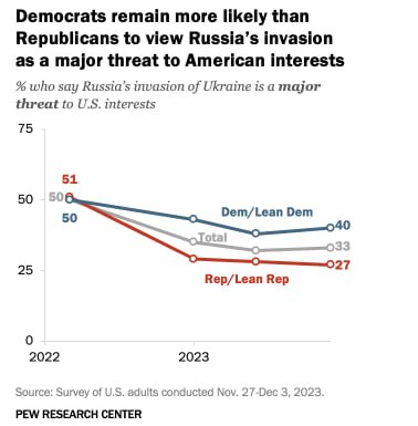 Частка американців, які кажуть, що США надають надто велику підтримку Україні, неухильно зростала під час війни, особливо серед республіканців.