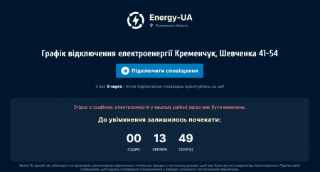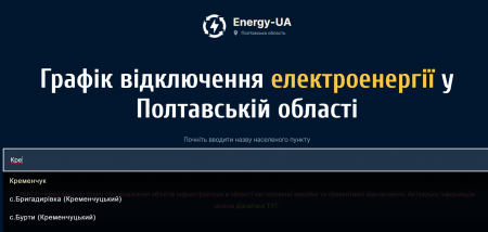 Сервіс energy-ua.info надає користувачам інформацію щодо погодинних відключень електроенергії. На цей час він працює у декількох областях, в тому числі й у Полтавській.