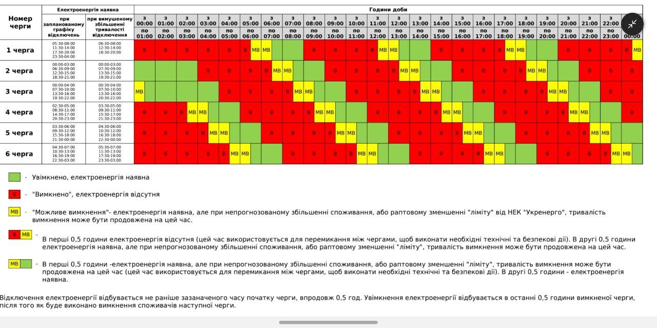 Періодичність та тривалість застосування кожної черги відображена за посиланням. Перелік адрес ТУТ.