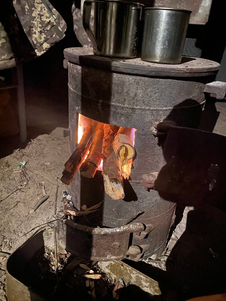 До речі, про побут перших днів… В наметах стояли буржуйки — біля них грілися. В мене був кип’ятильник, ним гріли чай. Дуже допоміг, коли було холодно. В списку, який давали для підготовки в НЦ, водонагрівача не було, тому всім рекомендую не тільки в список дивитися, а й розпитувати тих, хто може дати корисні поради. Також з необхідного, що прийшлося у пригоді, патрон із лампочкою, подовжувач — телефон заряджати, прищіпки й мотузка — одяг після прання сушити.