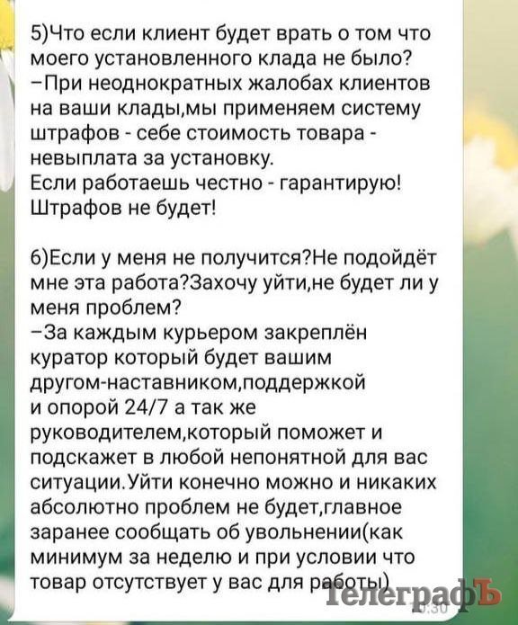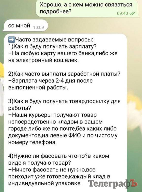 І вже у телеграм-каналі менеджер детально розповів Надії, у чому ж полягатиме робота. З’ясувалося, вона мала б забирати уже розфасовані наркотики та розповсюджувати їх у місті шляхом закладок. Подальший діалог жінка з «потенційним працедавцем» не продовжувала, натомість поділилася із редакцією скріншотами цих переписок.