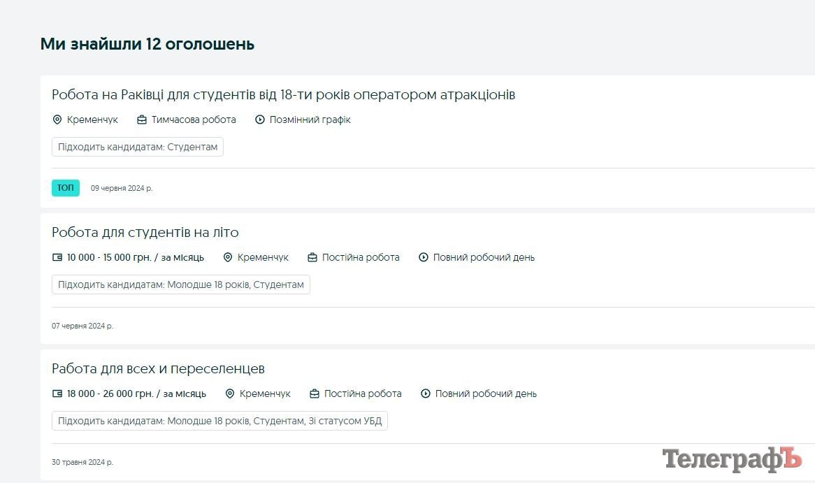 Друге — інтернет. На сайті OLX ми знайшли 12 оголошень на запит «де працювати молоді влітку у Кременчуці». Серед 12 обрали лише чотири, бо всі інші, де вказаний нереальний розмір зарплатні, краще навіть не розглядати, бо це скоріш за все або обман, або кримінал.